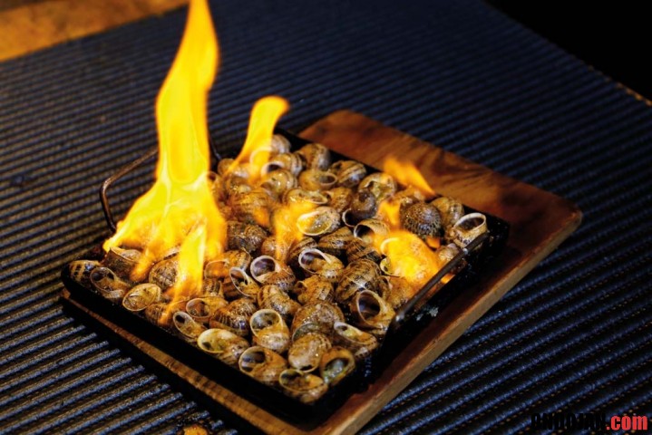 Además de los calçots, ya fuera del menú, tuvimos también la oportunidad de degustar una de las grandes especialidades de la casa: los Caracoles a la Llauna, que se sirven en la mesa envueltos en llamas. Un plato espectacular y exquisito que se degusta acompañado de una contundente y sabrosa salsa alioli casera. Los caracoles son también especialmente representativos de Lleida, al igual que los calçots, y es que si bien All i Oli es un restaurante catalán, su origen se encuentra en el Vall d´Aran, en pleno Pirineo Leridano, y la cocina que encontramos en este establecimiento es una cocina catalana de montaña, de interior, una cocina más sencilla que la costera donde cobran más importancia las elaboraciones y especialidades de pescado y marisco.
