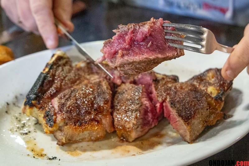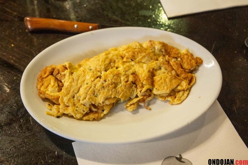 En mesa, el menú tradicional de sidrería prácticamente inamovible, salvo el hecho de que el bacalao puede degustarse a la manera convencional del 90% de las sagardotegis, es decir, frito y con pimientos verdes o, en su defecto, y como única concesión que se sale del renglón establecido, en una rica salsa verde. En cuanto al resto, el menú-menú: Tortilla de bacalao, Txuleta de vacuno, Queso, membrillo y nueces. Todo de primera.