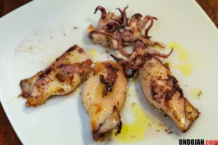 Y todo está rico en el Piñudi. Desde los txipirones a la plancha (1), txipirones patagónicos trabajados con vino blanco, limón, aceite de oliva y vinagre, un producto que a la gente le encanta, hasta la Brocheta de gambas (2) que recuerda en sabor y contundencia a la añorada y desaparecida brocheta del Goiz-Argi de antaño, pasando por la simple y muy efectiva Seta de cardo con jamón ibérico a la plancha (3), pintxo sencillo como pocos pero, como comenta Óscar, que cuenta con fans incondicionales. “Hay un seguidor del Barça que le llama a este pintxo “El Messi” nos comenta Óscar satisfecho de este pintxo que nosotros calificamos de “pintxo-trampa”, porque, vamos a ver ¿a quién no le gusta esta combinación de sabores??
