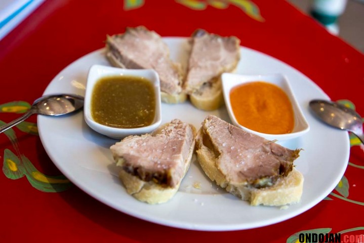 Para terminar la carne, nos es servida una última tapa de Carne mechá (Foto 9) con salsa churrasco, y una especie de mojo picón, pero más potente que el canario al contar con más comino y más guindilla. Ambas salsas son potentes y sabrosonas, y se complementan de cine con la carne que, precisamente, es servida totalmente seca y libre de salsa.