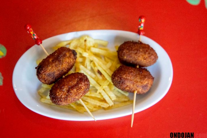 Seguimos adelante en la degustación de pintxos con otro producto auténticamente andaluz, la Tortillita de camarón (Foto 2), tentempié de origen gaditano que se ha convertido en emblema de la fritura andaluza en general. Las de Arrikitaun, además de ricas y crujientes, no resultan nada aceitosas. El único problema es que una llama a comer otra.