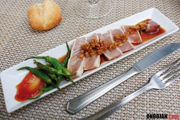3.- TATAKI DE BONITO DEL NORTE Y VINAGRETA DE SOJA, CEBOLLA Y GENGIBRE: