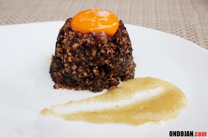 6.- VOLCÁN DE MORCILLA CON MANZANA Y PASAS: