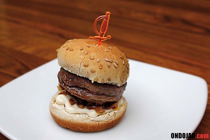 La última creación de Ander Esarte. Hay muchas mini-hamburguesas pero no todas están elaboradas con carne de buey de la zona del Esla, comarca del norte de León donde se crían bueyes de primera calidad. El resultado salta a la vista... y al paladar.
