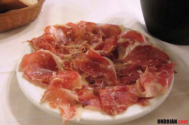 La carta de Joxe Mari, como en todos los grandes asadores, se compone de una serie de entrantes dirigidos a entretener el estómago mientras esperamos la carne o el pescado. Al acudir solo me decanté por media ración de un riquísimo Jamón de bodega, aunque puede optarse por otros platos como Gambas a la plancha, Ensalada mixta, Antxoas del Cantábrico, Sopa de pescado...