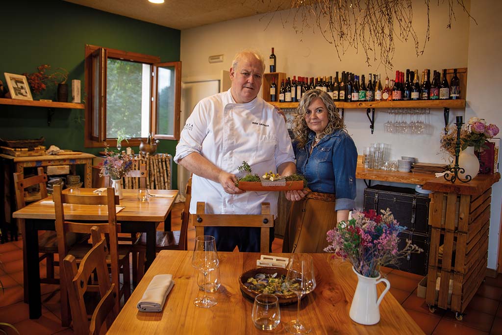 Iker Uranga, chef donostiarra curtido en cocinas como Arzak, Sant Pau con Carme Ruscalleda o Panier Fleuri, entre otras, dirige junto a su mujer, Lorena Arteaga, este ostatu que se ha convertido en meca de gourmets y sibaritas dado lo exquisito de su cocina, lo cuidado de su trato y su excelente carta de vinos.